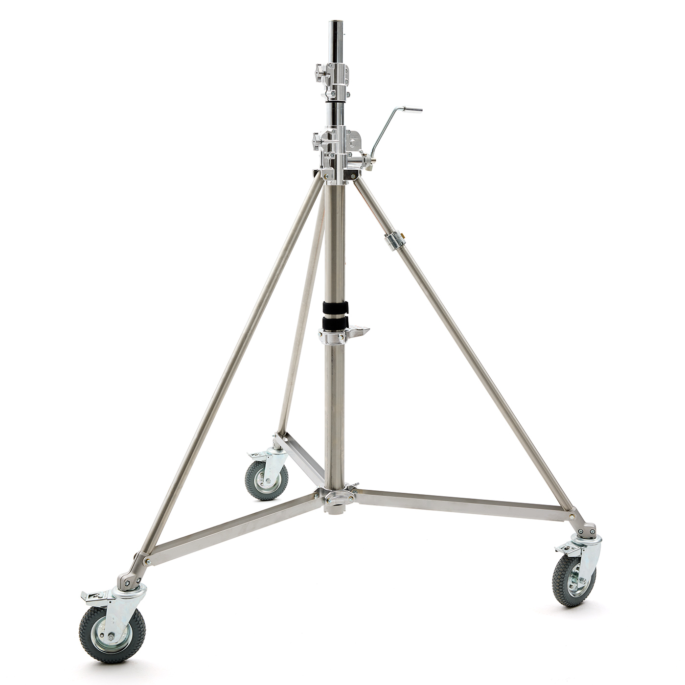 • The Avenger Super Wind Up 40 (B6040X) is a heavy-duty 3-section, 2-column steel construction designed for a secure, high-capacity light stand, featuring a geared column and foam-filled braked wheels.